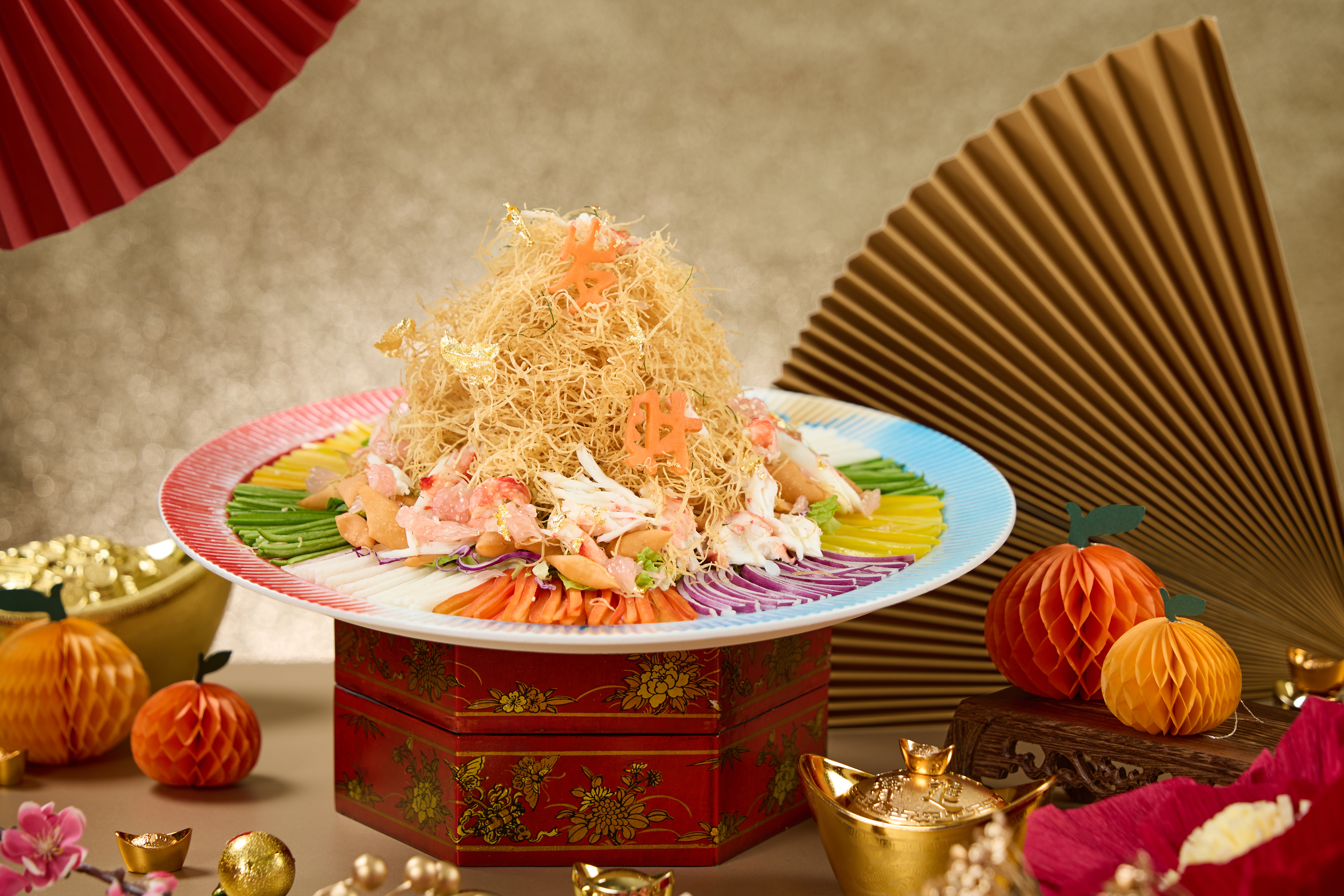“Lo Hei” - Mixed vegetables with Alaskan king crab, deep-fried taro sliced in sesame sauce,