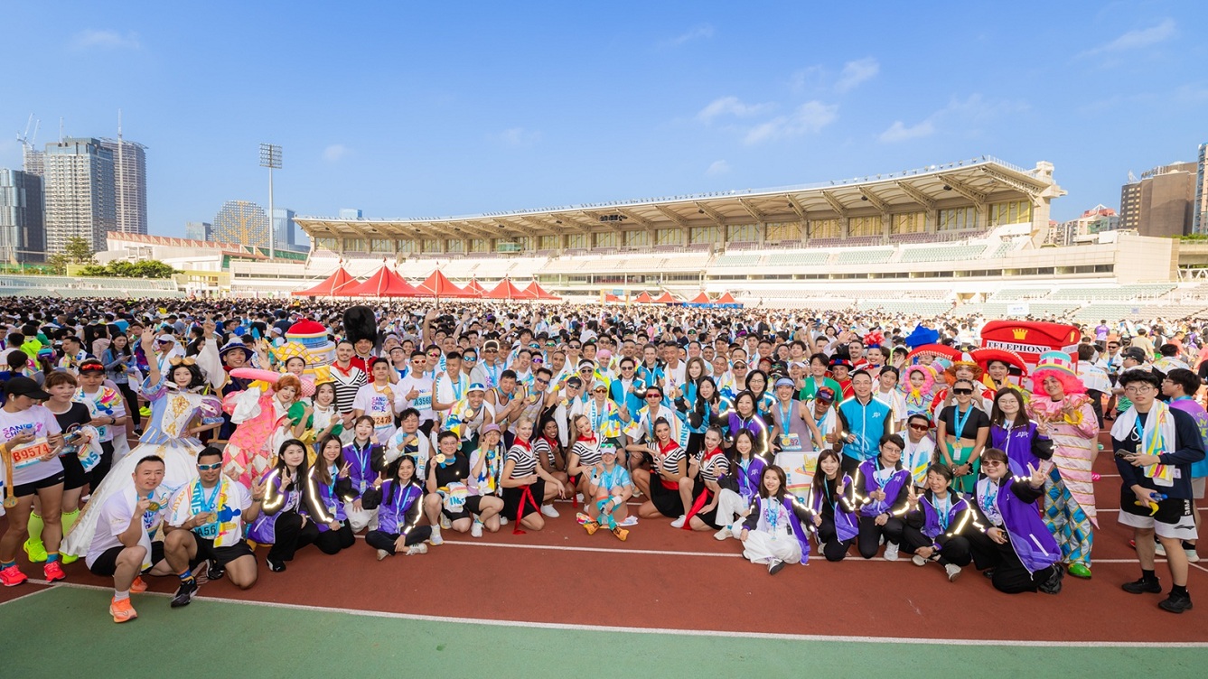 Photo caption: Sands China team members celebrate the completion of the race at a packed Olympic Sports Centre Stadium. The company arranged for a group of 550 to join the race together, comprising Sands China team members and members of social service institutions from three regions, promoting the inclusive concept of “sport knows no boundaries.”