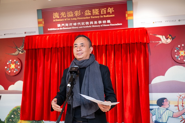Photo caption: Distinguished guests officiate at the opening of “A Century of Iec Long Firecracker Factory in Radiance – An Exhibition on the Resonant History and Aesthetic Memory of Macao Firecrackers” at Sands Gallery Wednesday.