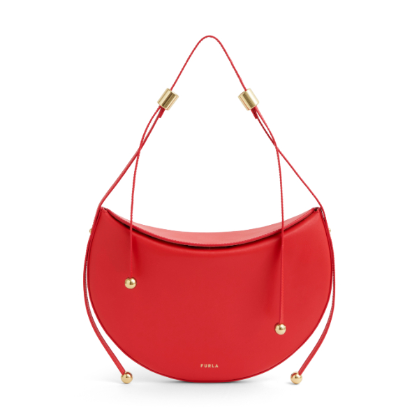 The Furla Moonstone features clean geometric lines, crafted from smooth leather with a magnetic closure and adjustable shoulder strap, effortlessly creating a versatile style.