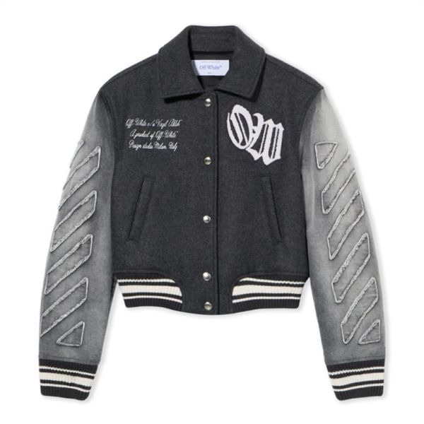 Gothic Class Varsity Jacket in a refined wool blend. Features signature embroidery, a cropped silhouette, and an urban, sophisticated vibe. Made in Italy.