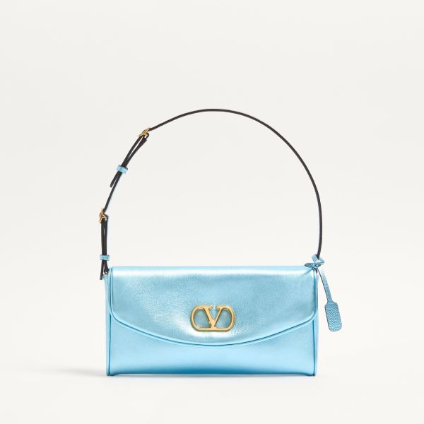 Valentino Garavani DeVain Small Shoulder Bag in lamb nappa with metallic finishing and VLogo Signature detail. The bag can be carried by hand or worn over the shoulder with a detachable strap.